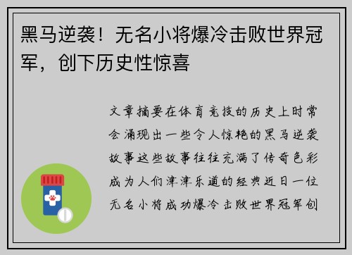 文章摘要:在体育竞技的历史上,时常会涌现...