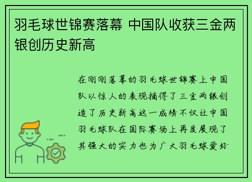 在刚刚落幕的羽毛球世锦赛上,中国队以惊人...