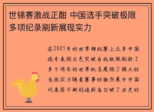 2025年羽毛球世锦赛圆满落幕,中国选手...