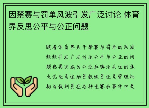 随着体育界关于禁赛与罚单的风波频频引发广...