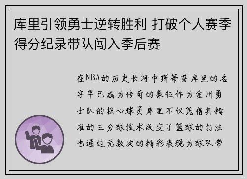在NBA的历史长河中,斯蒂芬·库里的名字...