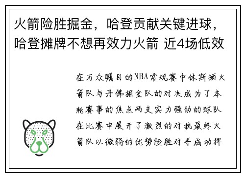 在万众瞩目的NBA常规赛中,休斯顿火箭队...