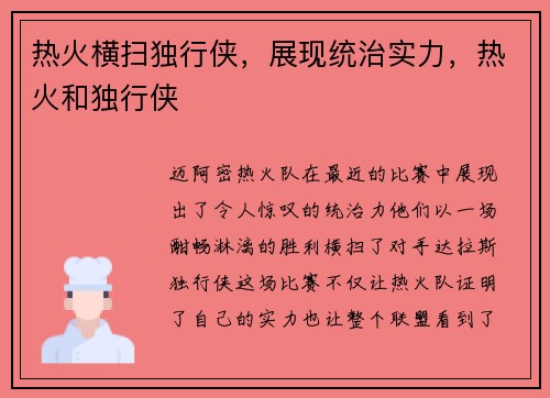 迈阿密热火队在最近的比赛中展现出了令人惊...