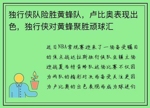近日,NBA常规赛上演了一场惊心动魄的比...