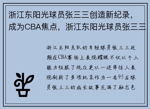 浙江东阳光队的年轻球员张三三近期在CBA...